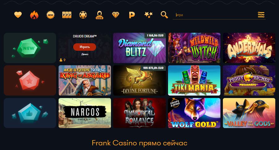 Чтобы выиграть в казино, необходимо придерживаться честного процесса, так пишут многие игроки в реальных отзывах Frank Casino. Ассортимент клуба наполнен классическими, современными автоматами и эмуляторами.