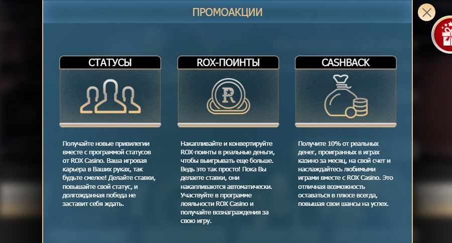 Растущая популярность онлайн казино Рокс объясняется доступностью игр, их разнообразием, наличием промо-акций, возможность геймплея через браузерную и мобильную версии, отсутствием дополнительных трат.