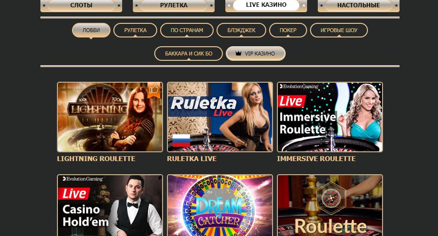 • Игры:Более 1200 слотов, покер, баккара, блекджэк, рулетка, кости, live-трансляции